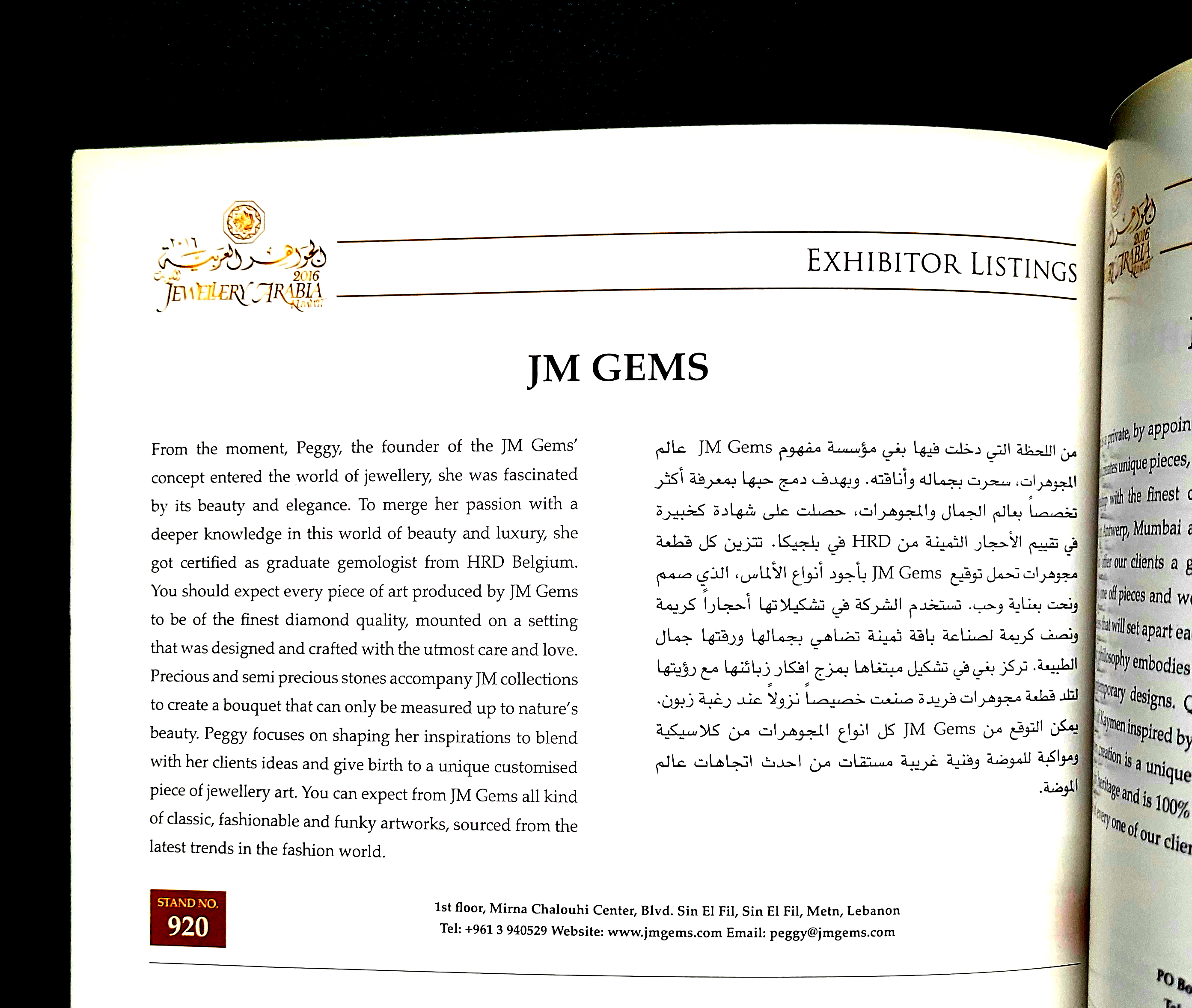 Peggy Elias is the founder and owner of JM Gems. Her jewelry has been exhibited and sold all over the world. With many publications in top magazines and countless orders from celebrities and royals, Peggy’s jewelry is in high demand.